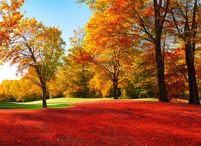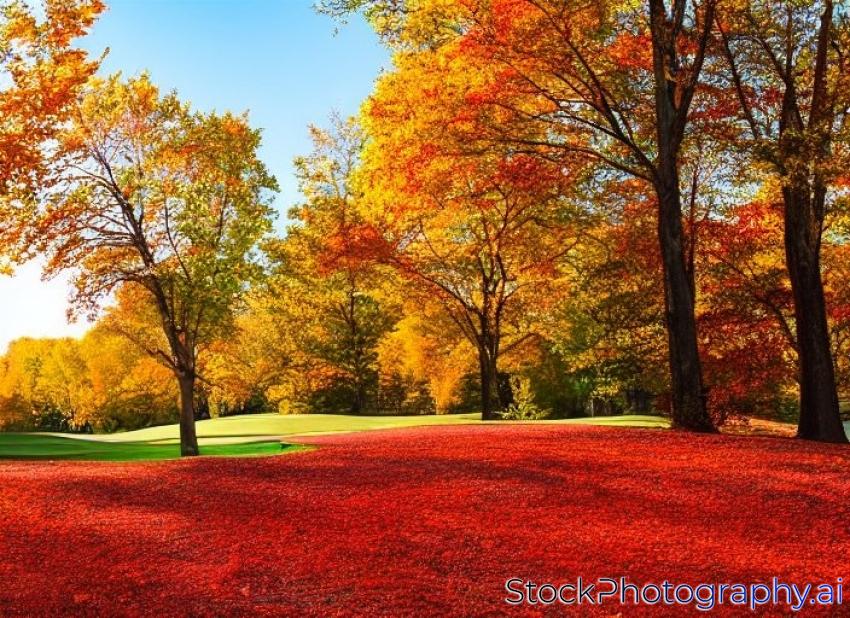 activity autumn background bright colorful environment fall field foliage golf carts golf club golf course green hobby landscape lawn leaves leisure lifestyle maple meditative midwest nature north america november october outdoors park red relaxation rural scenic season september sunny day tree tree brunches usa warm wisconsin-