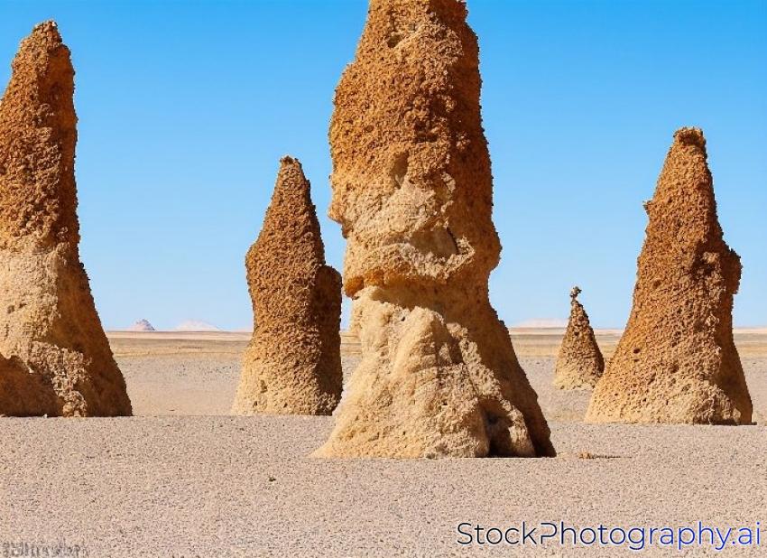 Trona Pinnacles are nearly 500 tufa spires hidden in California Desert National Conservation Area, not far from the Death Valley National Park, California, USA. Panoramic photo
