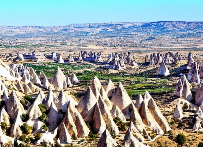 View of Cappadocia. Kappadokiets region, with its valleys, gorges, hills, located between the volcanic mountains in Goreme National Park. Turkey