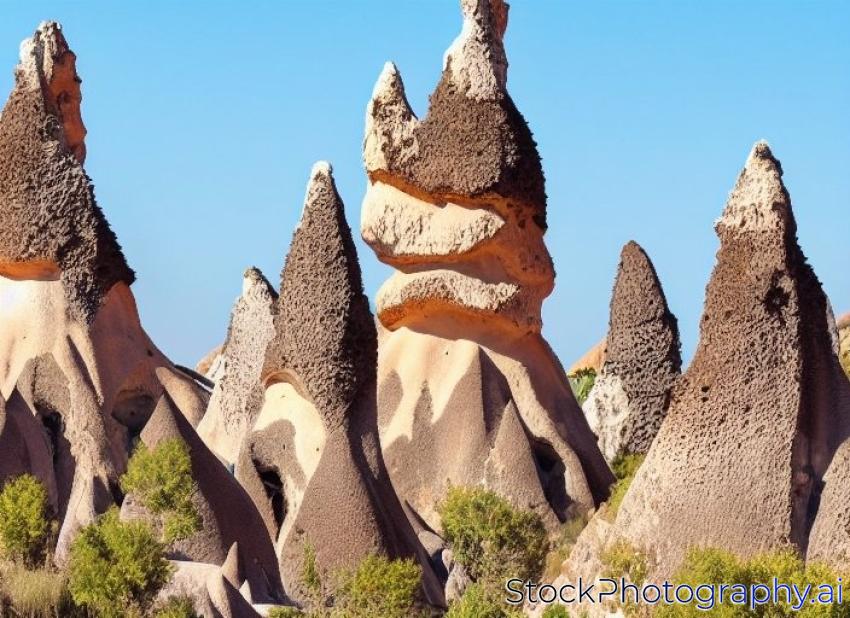 Volcanic rock formations known as Fairy Chimneys in Cappadocia, Turkey