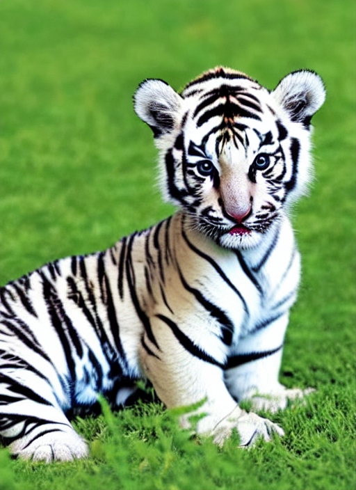 baby white bengal tiger standing on green grass