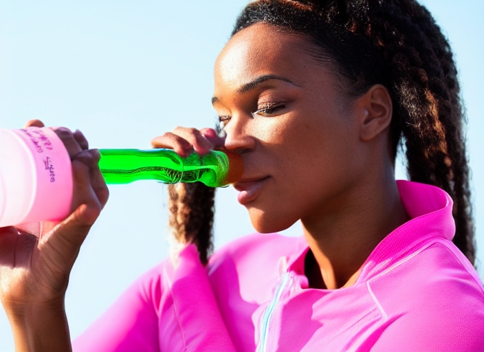 beautiful african american sportswoman with sport bottle isolated on pink with copy space