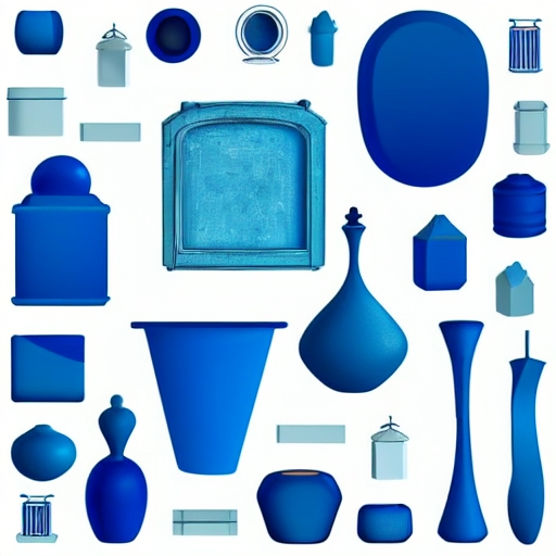 blue objects collection, isolated on white,