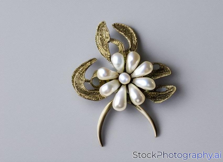 brooch in the shape of a flower with a pearl on a white background