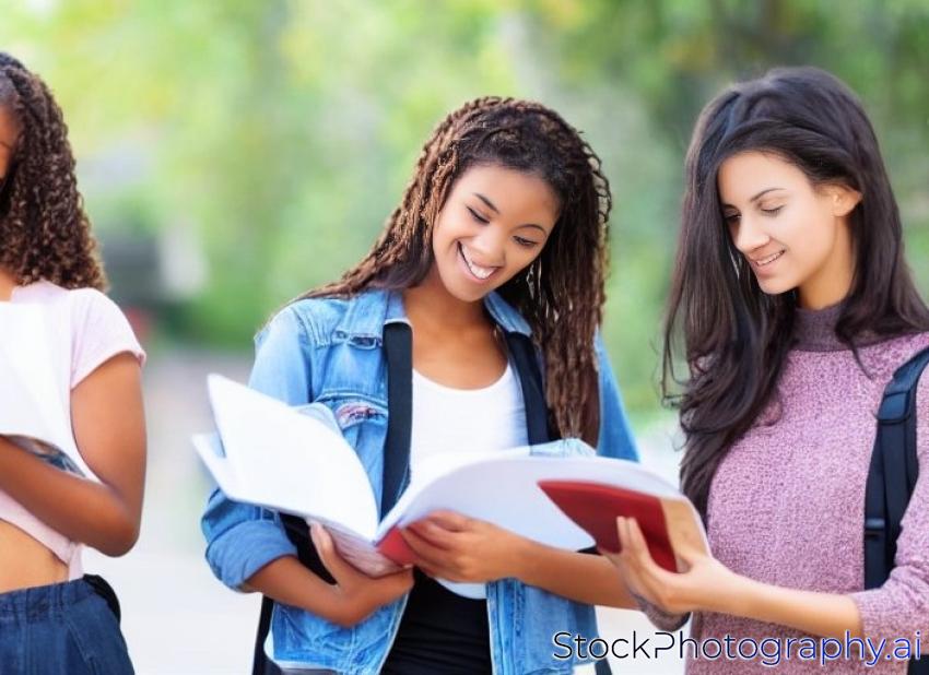 casual female students holding some notebooks, isolated