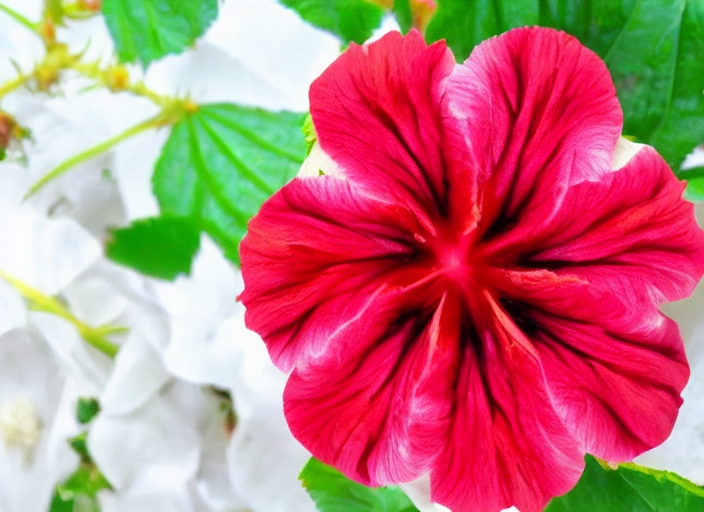 close up red hibiscus flower with yellow pollen isolated on white background, large brightly colored flowers are popular grown as ornamental plants and some of Asia used made into herbal medicines