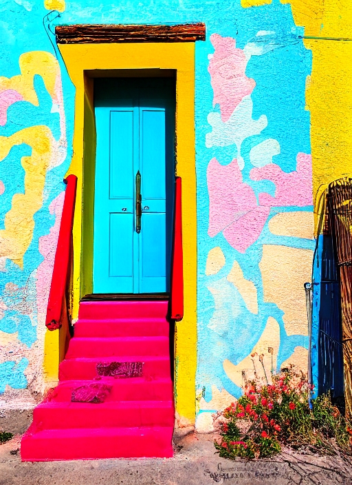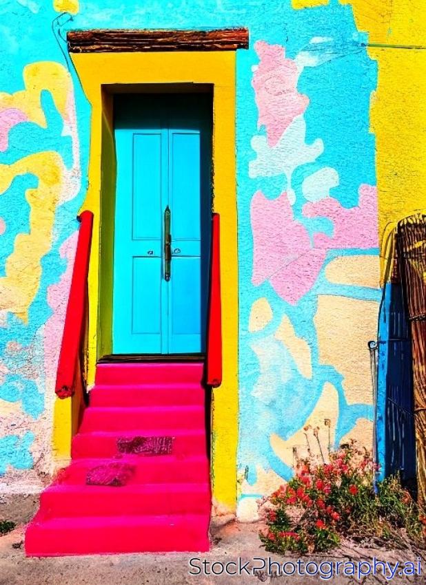 colorful door and steps in the Old Barrio, Tucson