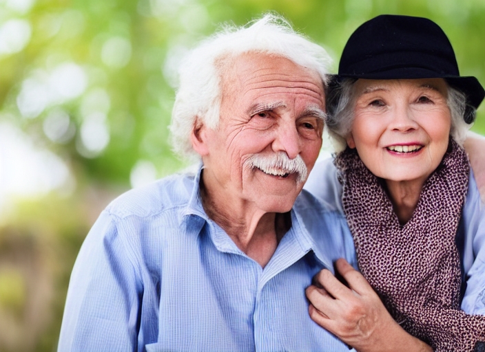cute old man and woman posing on black