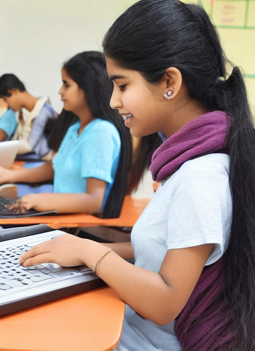 education series template - Friendly ethnic Indian woman high school student typing on portable computer