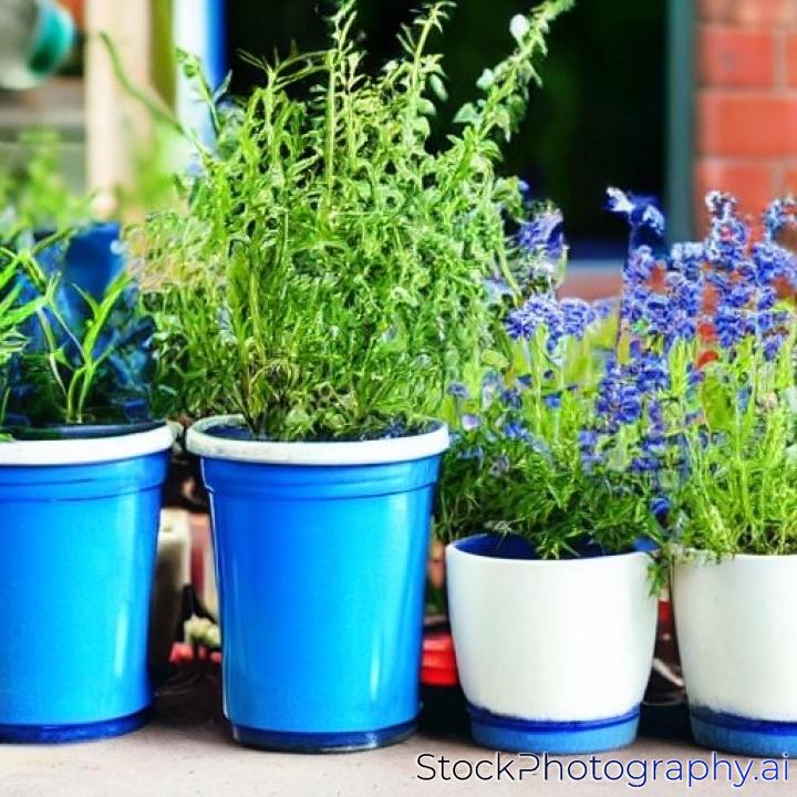 few blue pots