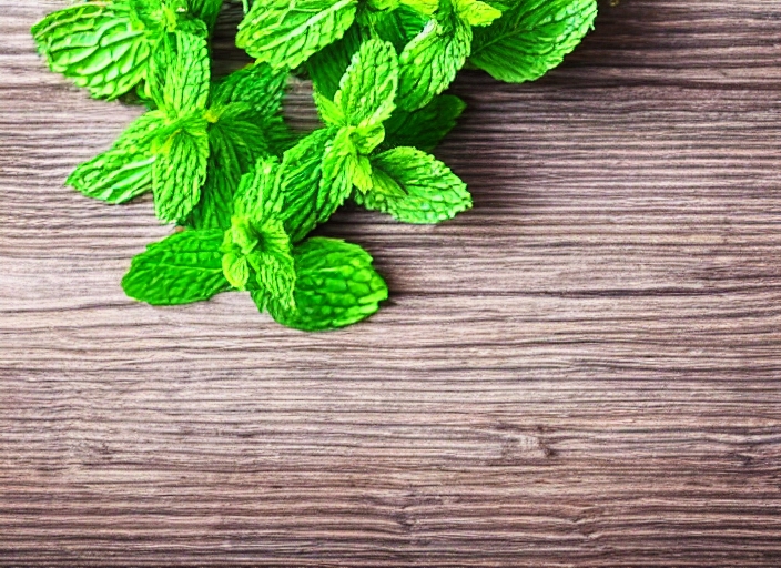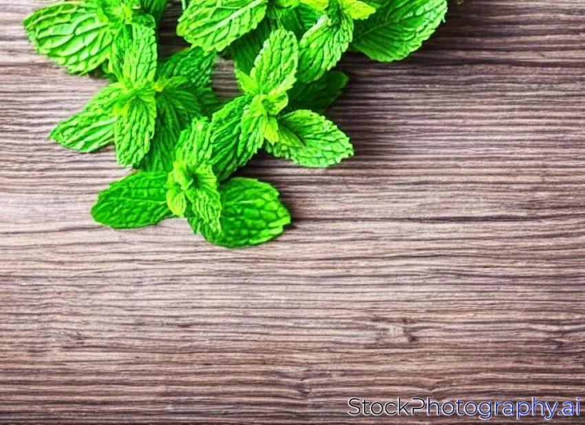 fresh mint leaves on a wooden background