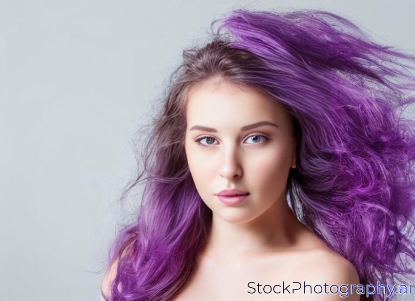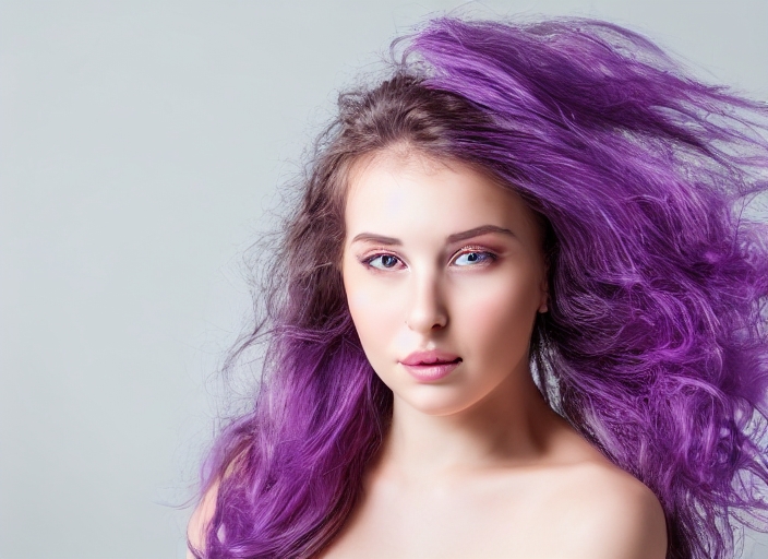 gentle young woman beauty portrait with purple flowers in hair, studio shot