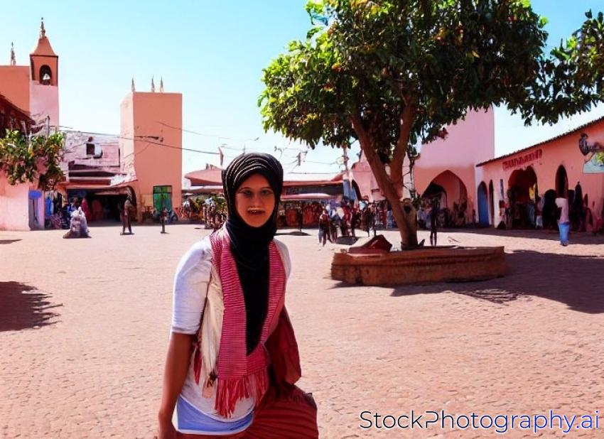 handsome girl tourist in the main square of Essauoira, Morocco