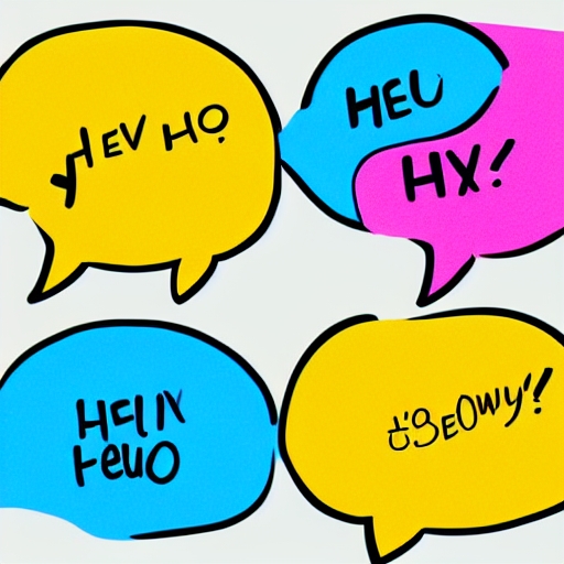 illustration - Hand drawn speech bubble. Set with text (hi, hello, hey). Speech bubble colorful set.
