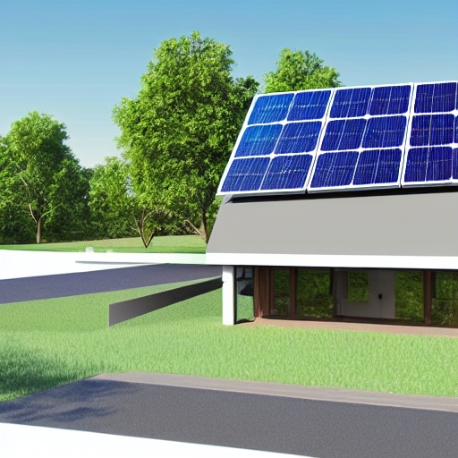 isolated rendering of sustainable house concept plan with solar panels on the roof standing of plan