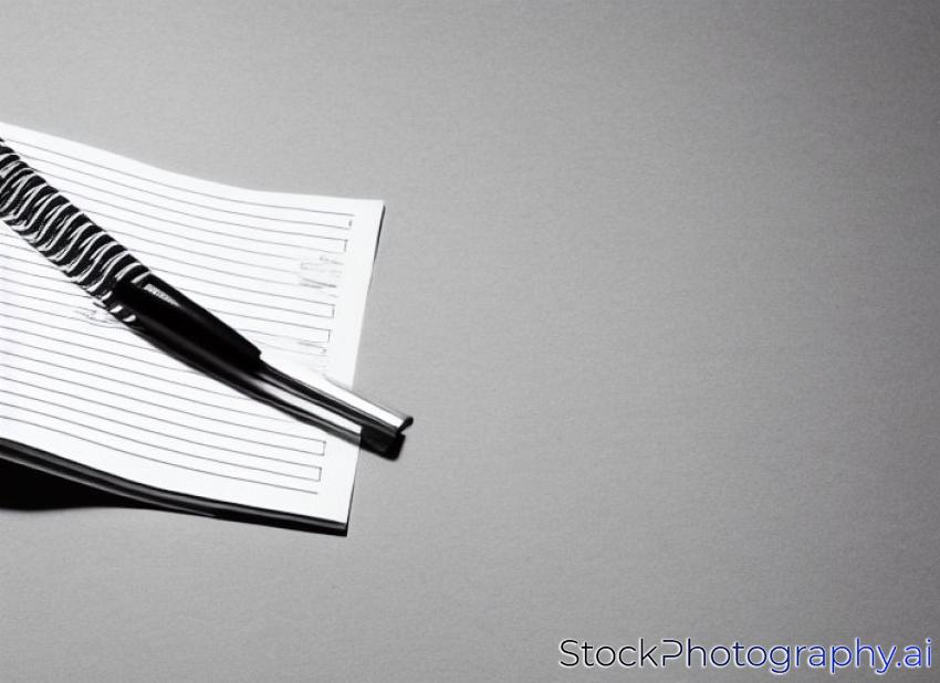 lined exercise book with books in background, visible shadow in front
