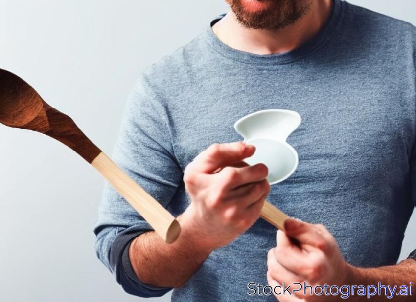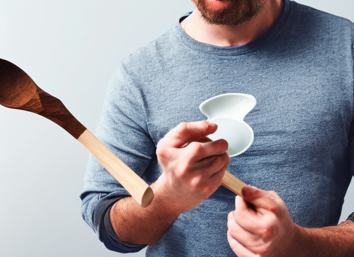 man holding a measuring spoon of protein