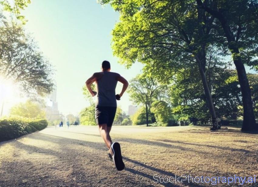 man is running in the park, healthy lifestyle in the city, make a good shape and deep breath of oxygen