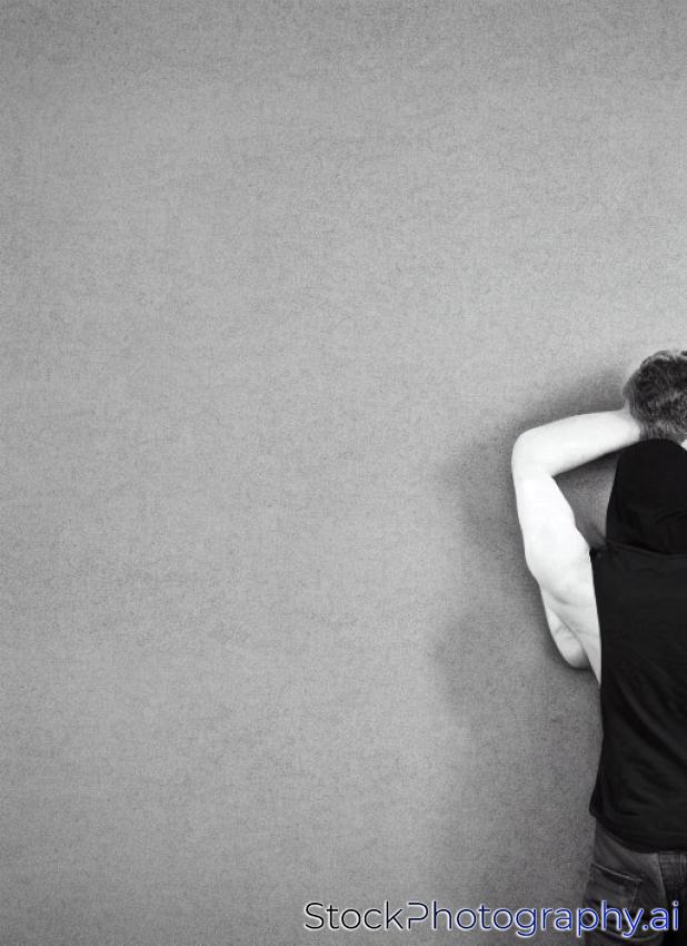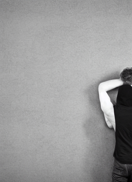 man thinking with question mark and concrete wall