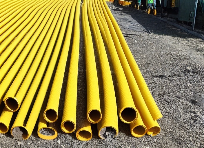 many yellow corrugated tube for laying electric cables in the yard