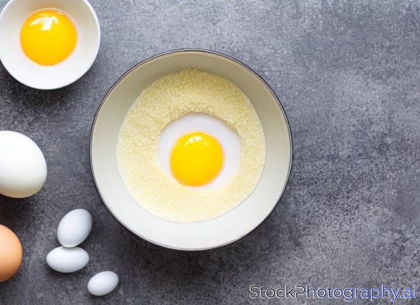 mixing raw eggs in bowl and add sugar