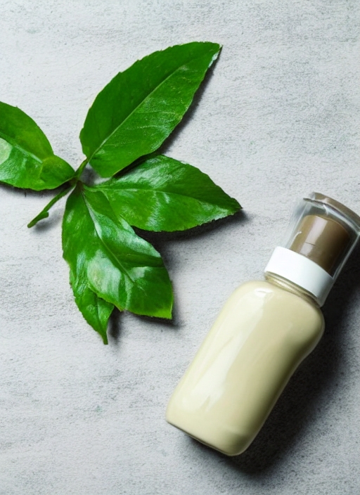 organic cream and lotion in plastic containers with green leaves, isolated on white