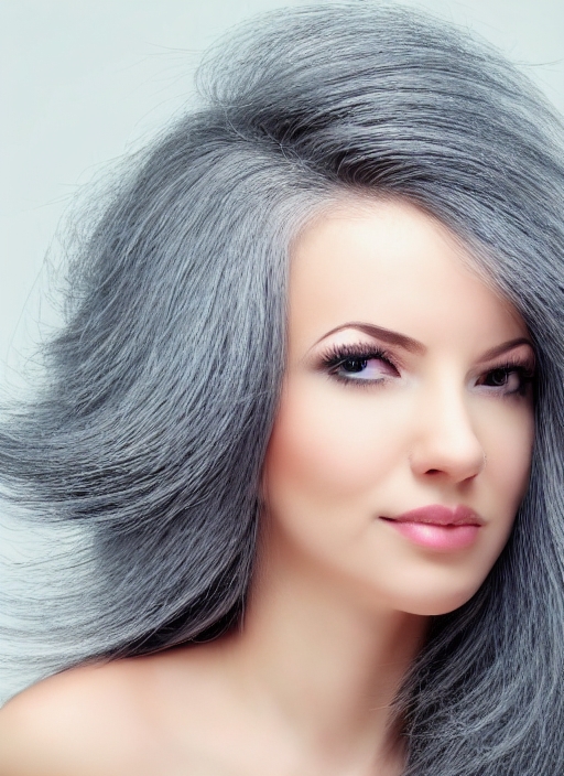 picture of lovely woman with fashionable hair over grey