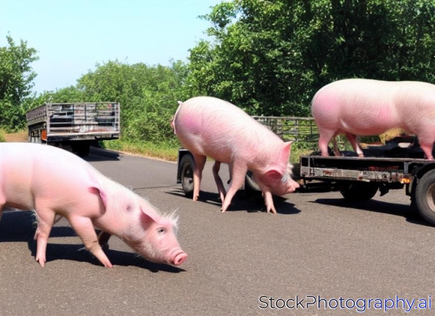 plenty pigs during transport by truck