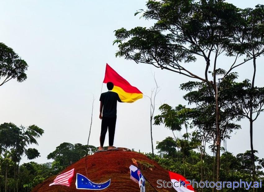 agustus asian august back blue celebrate celebrating celebration cliff countryside day flag forest freedom goal guy hiking hilltop independence landscape malay malaysia malaysian male man merdeka mountains nation one outdoors patriot patriotic peak place pride red rock scenic scream shouting sky stripe sun support symbol victory win woods youth-
