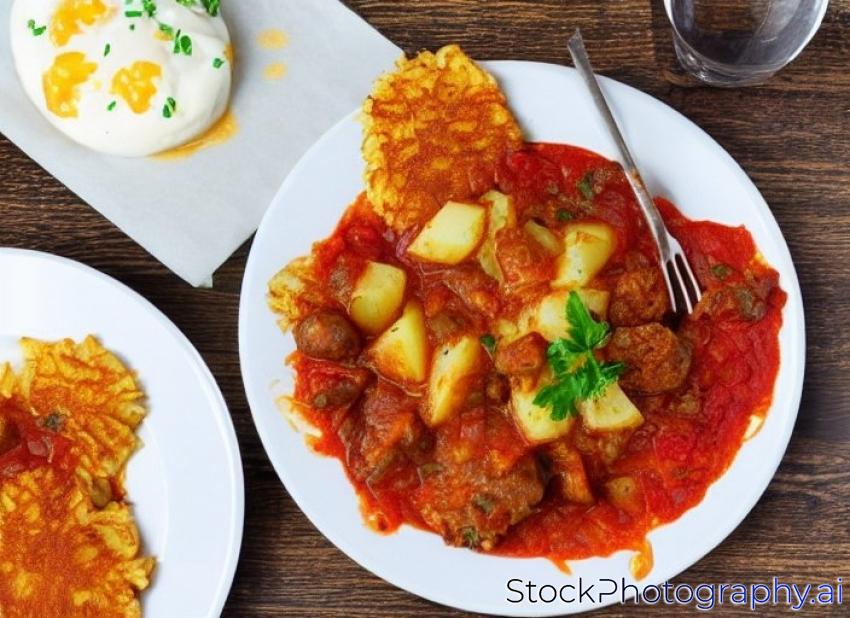 potato pancake and Hungarian goulash