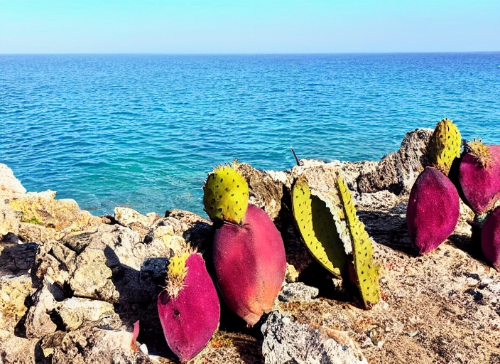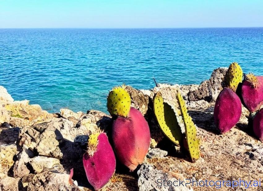 prickly pear on blue sea; typical sicilian view