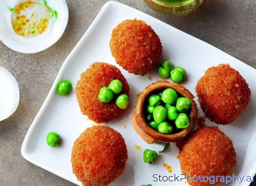 raw arancin:i a rice croquette stuffed with a sauce of minced meat, tomato, and peas