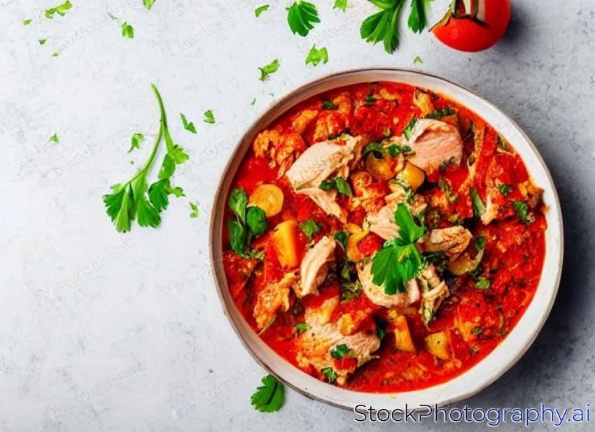 raw chicken goulash on white background