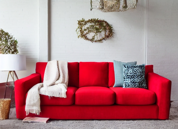 red retro couch on white