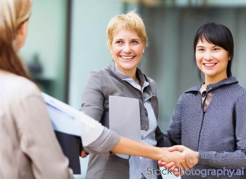 seller and smiling customers handshake at the time of purchase.