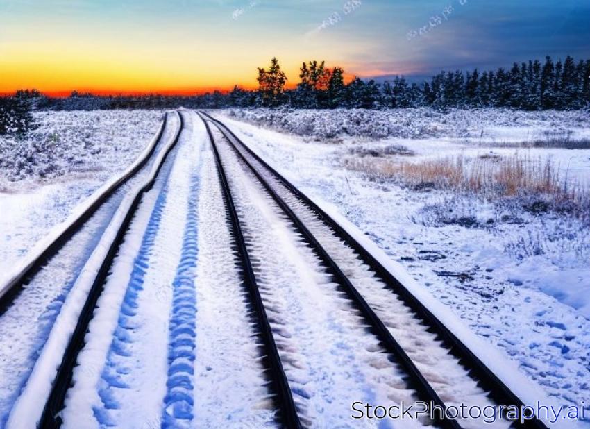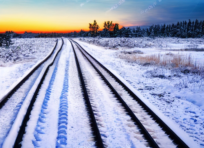 sunset with tracks in snow