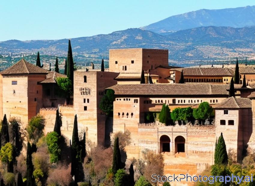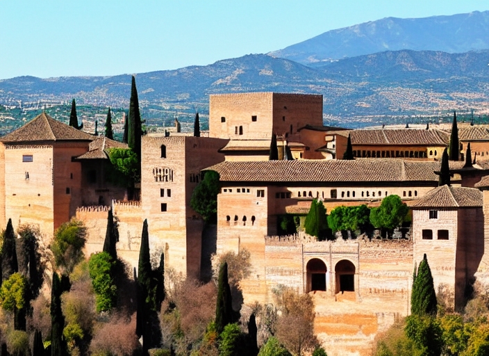 alhambra ancient andalucia andalusia arabic architecture attraction beautiful blue building castle city construction culture europe evening fort fortress granada historical history islamic landmark light medieval monument moorish moors mountain muslem muslim old original palace royal sierra sky spain spanish style sunset temple tourism tourist tower travel tree walls water-