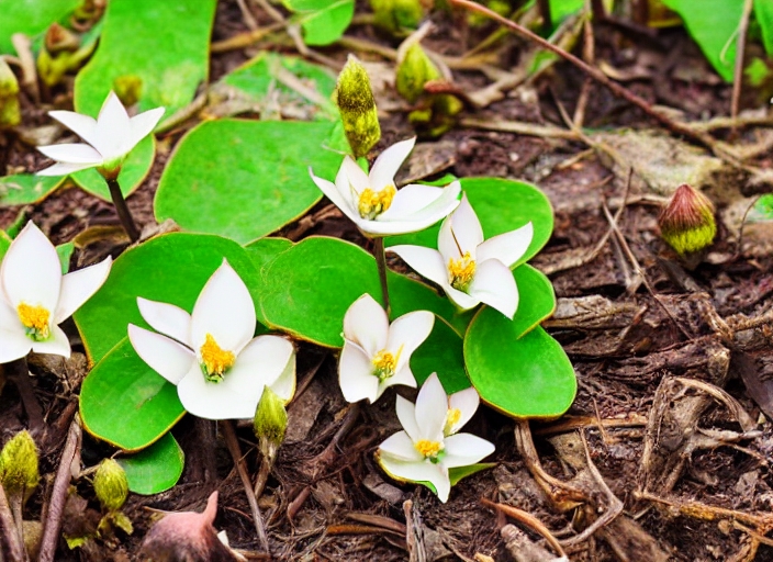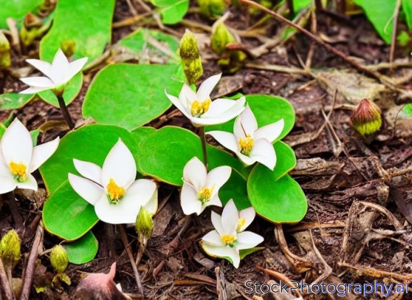 European wild ginger (Asarum europaeum L.) with flowers, selective focus. Forest plant European wild ginger (Asarum europaeum L.) in spring during flowering