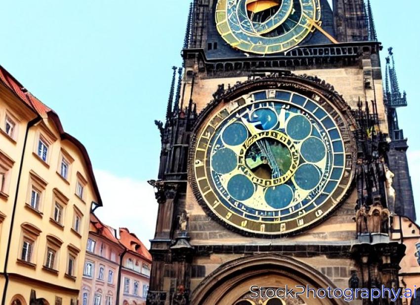 Famous Astronomical Clock (Orloj) and the Tyn Church in Prague, Czech Republic