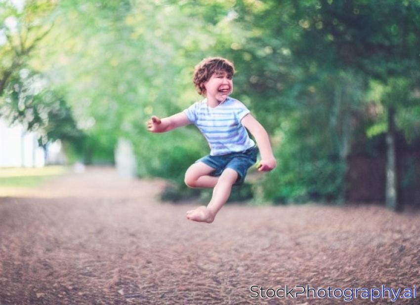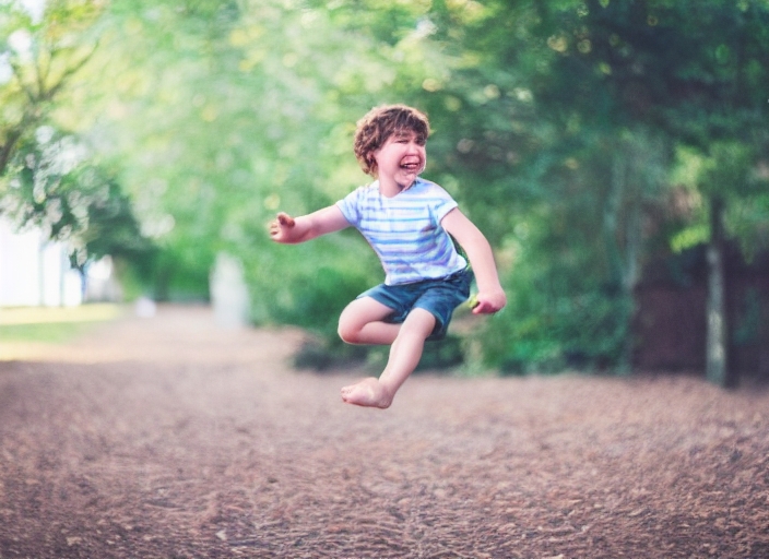 Happy jumping boy. Soft focus. Focus on eyes
