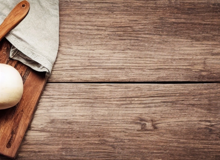 Kitchen table/Cookbook background. An old wooden kitchen table. Kitchen plank, bowl, kitchen towel and jar.