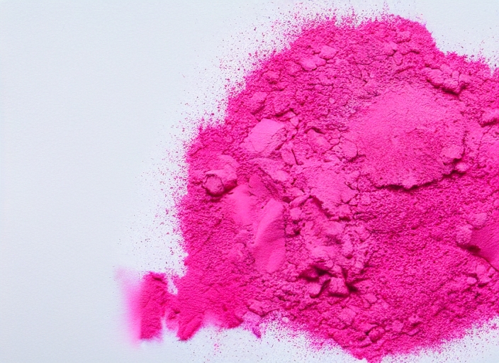Make up crushed pink powder on white background. Texture of crushed pink powder isolated on white background