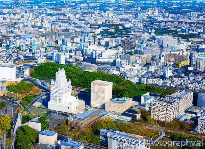 Nagoya, Japan - city in the region of Chubu in Aichi prefecture. Aerial view with Castle Park.