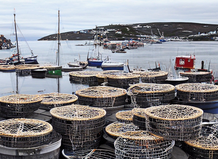 ST. JOHN'S, NEWFOUNDLAND - AUGUST 1: Fishermen stack dozens of crab pots on the harbor docks marking the end of the snow crab season in St. John's, Newfoundland on Aug. 1, 2009.