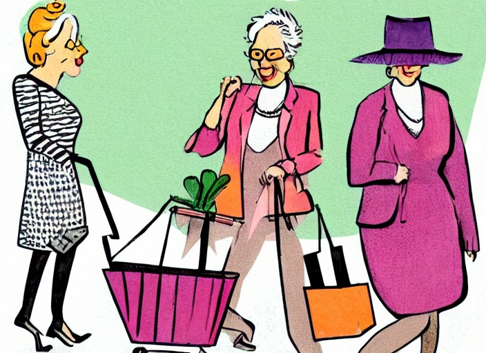 Spring chicken going shopping in the sales. Dressed to kill. Young at heart senior concept. Fun.