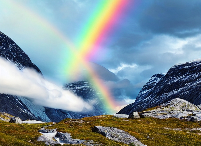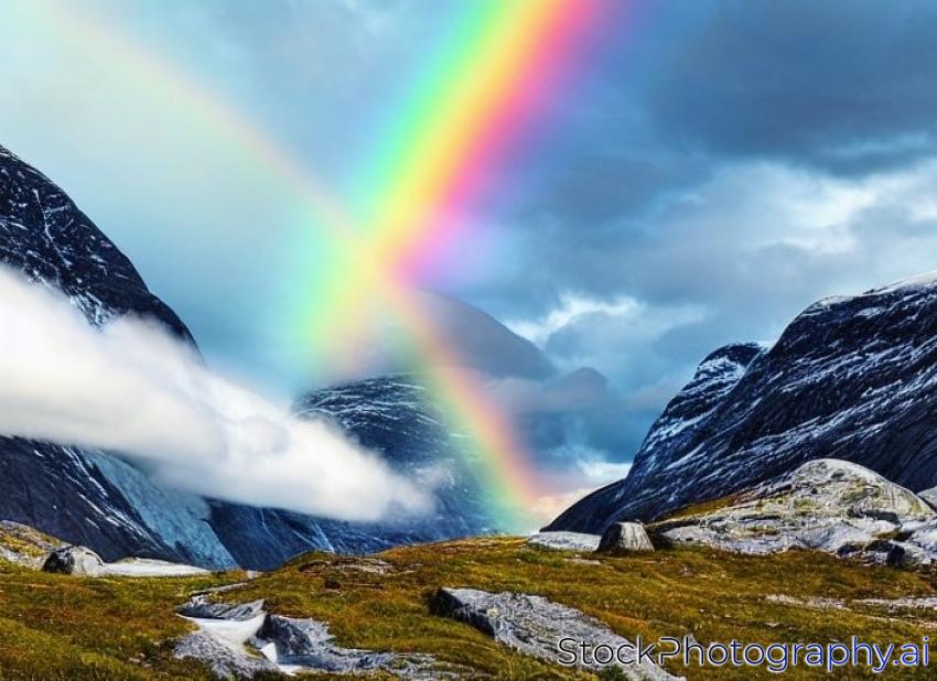 Stardalen, Skei I Jolster, Jostedalsbreen National Park, Norway. Beautiful Sky After Rain With Rainbow Above Norwegian Rural Landscape. Agricultural And Weather Forecast Concept.