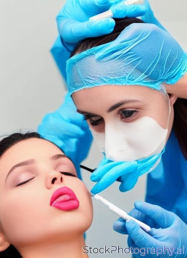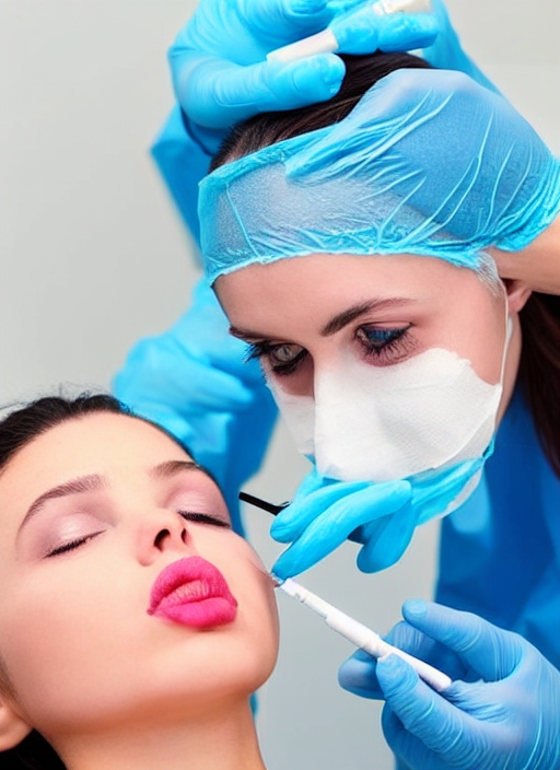 Surgeon giving lip beauty injections to a girl