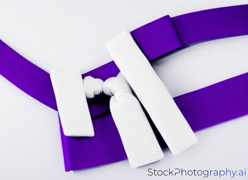 Tied Karate purple belt closeup isolated on white background