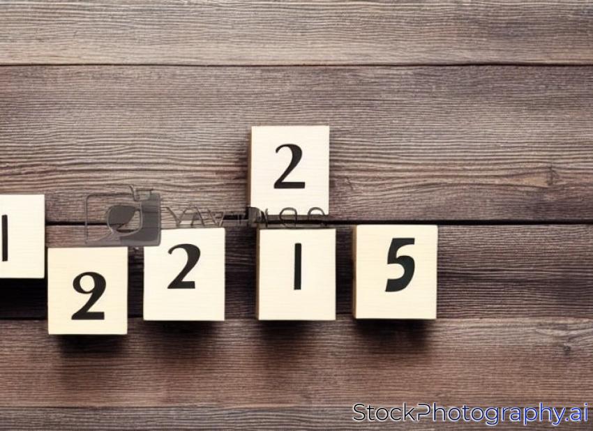 Toy wooden blocks displaying 123 on wood plank with dark background.
