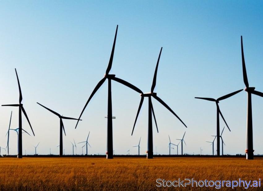 Wind turbines on a field at late afternoon